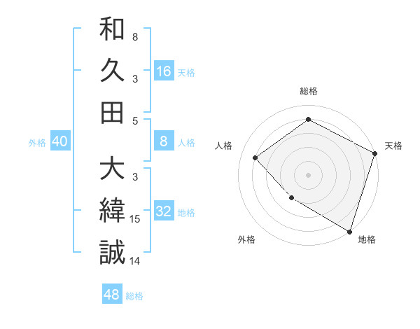 和久田 大緯誠さんを姓名の画数から五運を鑑定