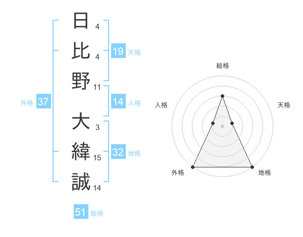 日比野 大緯誠さんを姓名の画数から五運を鑑定