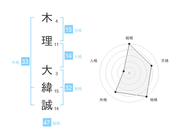 木理 大緯誠さんの総格は47画の5点!