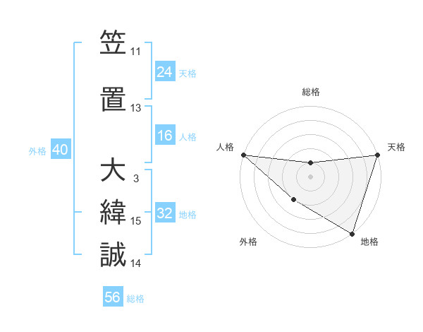笠置 大緯誠さんを姓名の画数から五運を鑑定