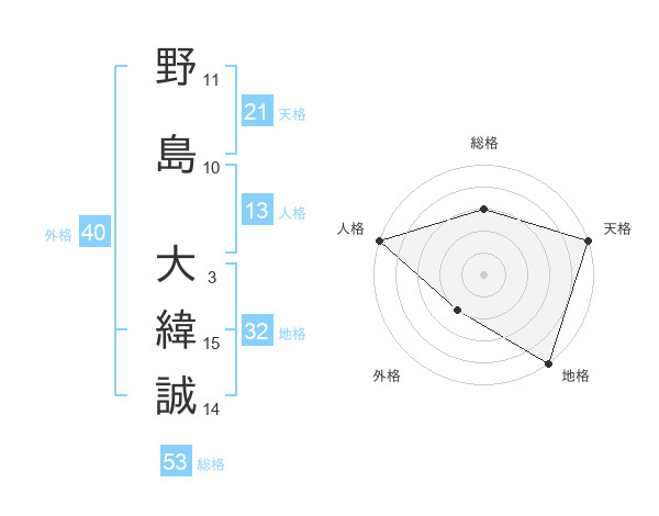 野島 大緯誠さんを姓名の画数から五運を鑑定