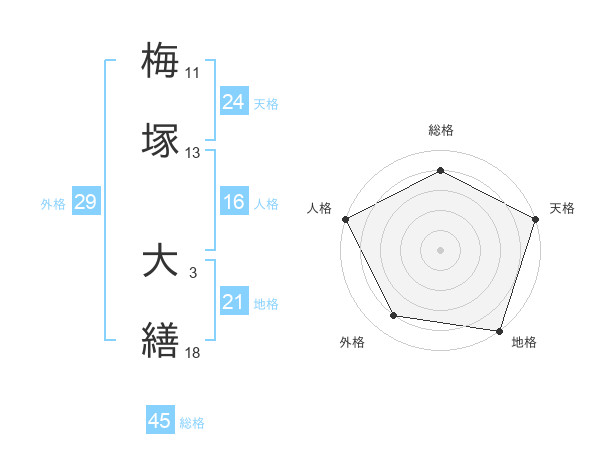 梅塚 大繕さんを姓名の画数から五運を鑑定
