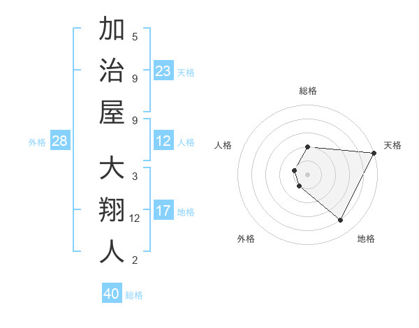 加治屋 大翔人さんを姓名の画数から五運を鑑定
