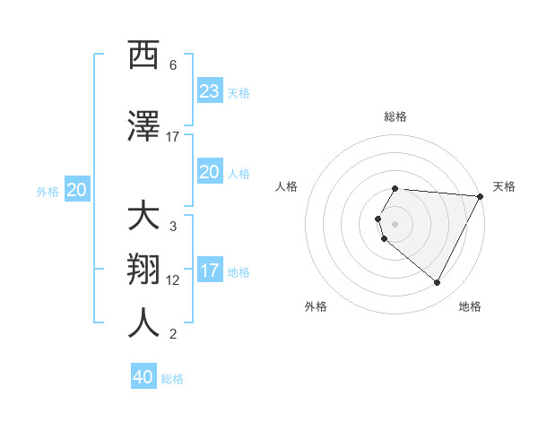 西澤 大翔人さんの天格は23画の5点!