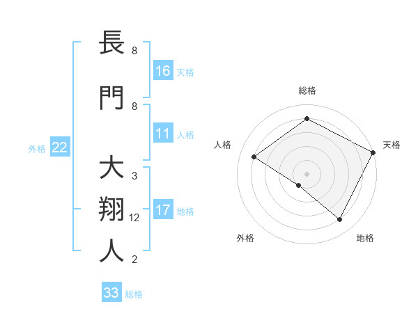 長門 大翔人さんを姓名の画数から五運を鑑定
