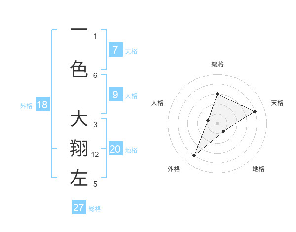 一色 大翔左さんを姓名の画数から五運を鑑定