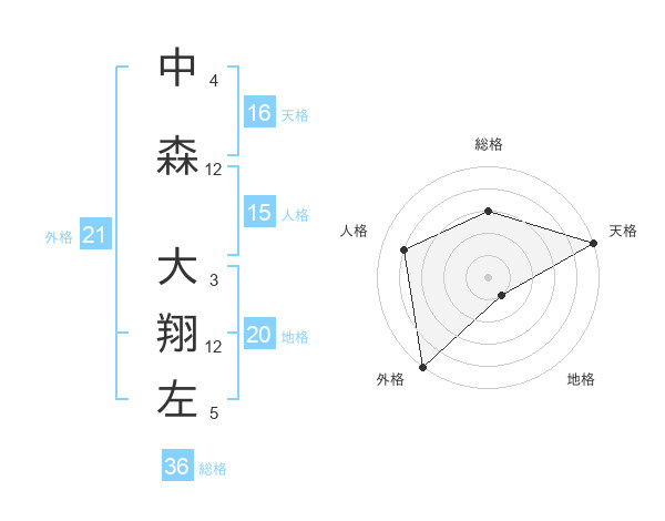 中森 大翔左さんの外格は21画の5点!