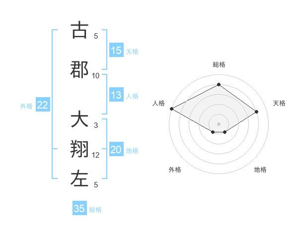 古郡 大翔左さんを姓名の画数から五運を鑑定