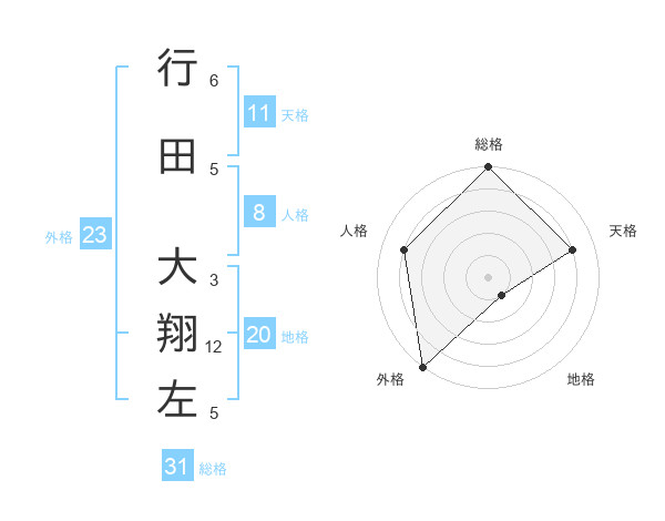 行田 大翔左さんの外格は23画の5点!