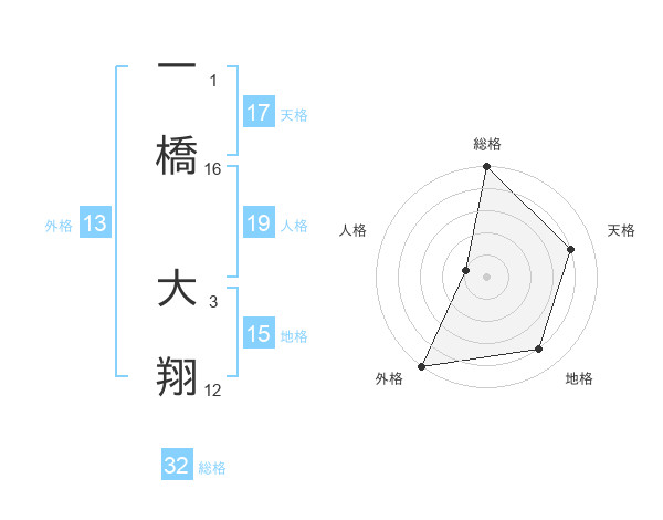一橋 大翔さんを姓名の画数から五運を鑑定