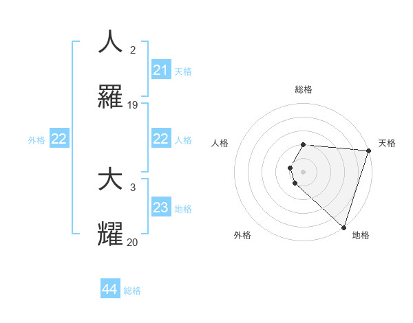 人羅 大耀さんを姓名の画数から五運を鑑定