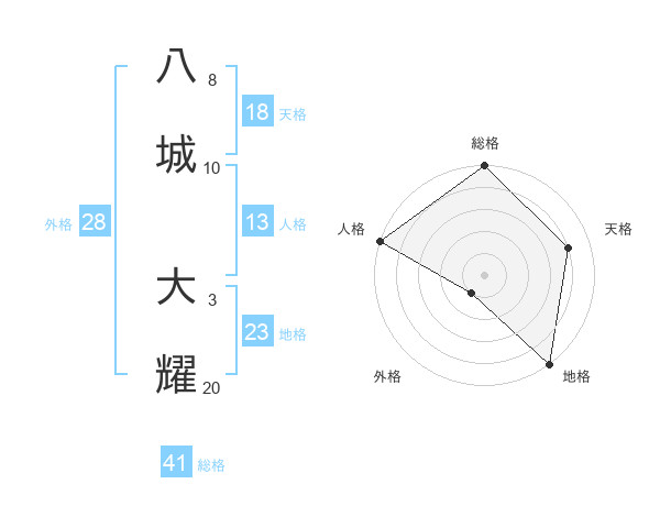 八城 大耀さんを姓名の画数から五運を鑑定