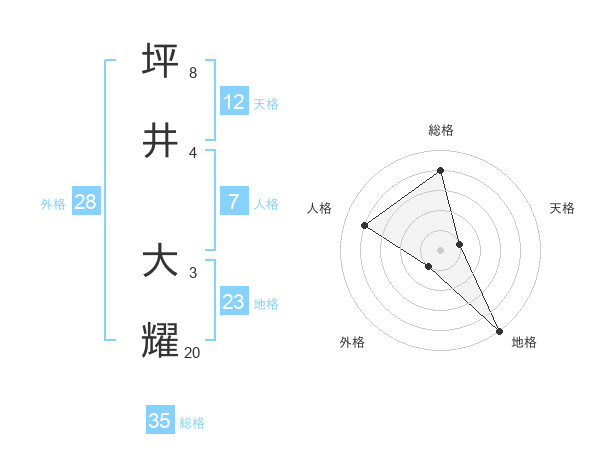 坪井 大耀さんの総格は35画の4点!