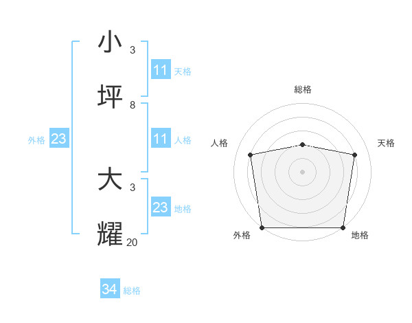 小坪 大耀さんの外格は23画の5点!