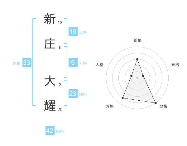 新庄 大耀さんを姓名の画数から五運を鑑定