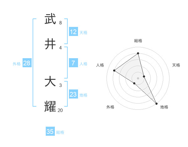 武井 大耀さんの総格は35画の4点!