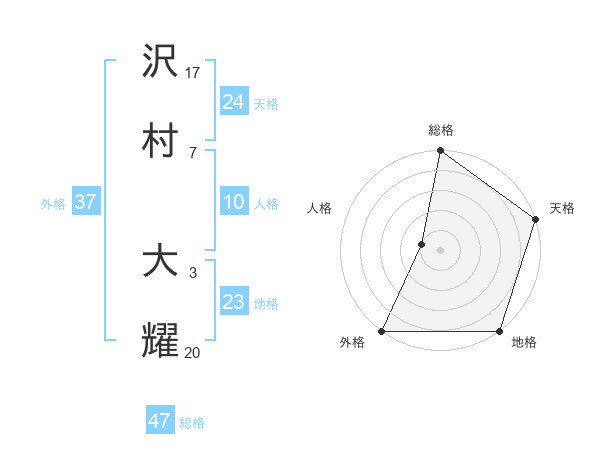 沢村 大耀さんの総格は47画の5点!