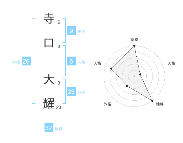 寺口 大耀さんを姓名の画数から五運を鑑定