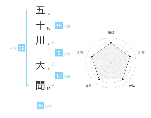 五十川 大聞さんを姓名の画数から五運を鑑定