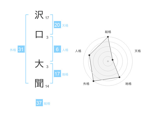 沢口 大聞さんを姓名の画数から五運を鑑定