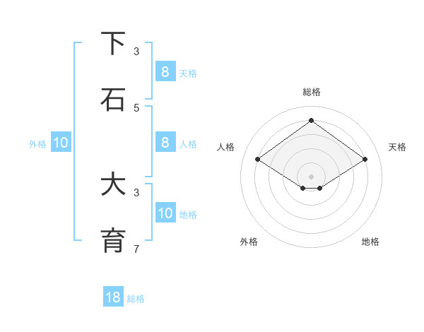下石 大育さんの総格は18画の4点!