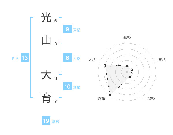 光山 大育さんの総格は19画の1点!