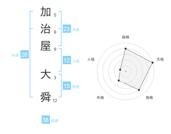 加治屋 大舜さんを姓名の画数から五運を鑑定