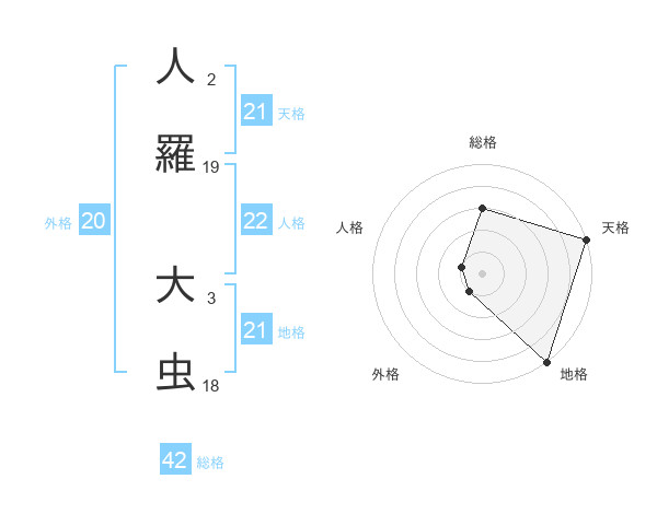 人羅 大虫さんの地格は21画の5点!