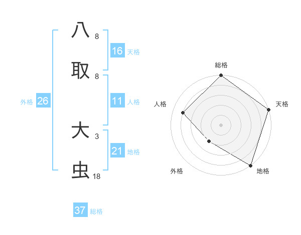 八取 大虫さんの総格は37画の5点!