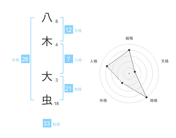 八木 大虫さんの総格は33画の4点!