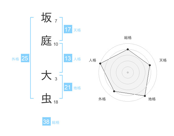坂庭 大虫さんを姓名の画数から五運を鑑定