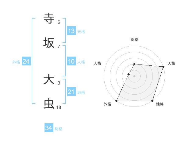 寺坂 大虫さんを姓名の画数から五運を鑑定