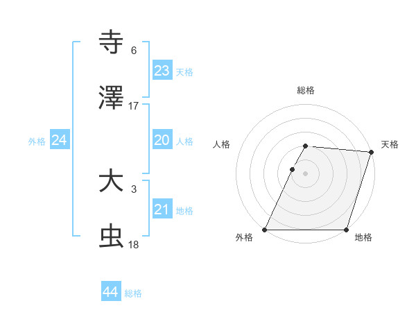 寺澤 大虫さんの総格は44画の2点!