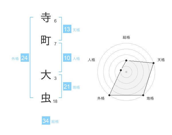 寺町 大虫さんを姓名の画数から五運を鑑定