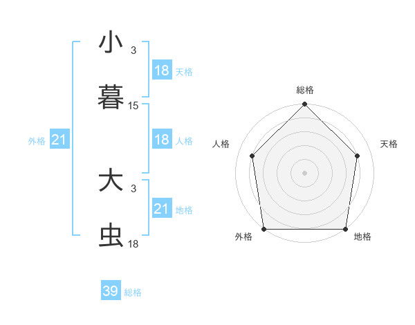 小暮 大虫さんの総格は39画の5点!