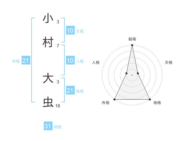 小村 大虫さんの総格は31画の5点!