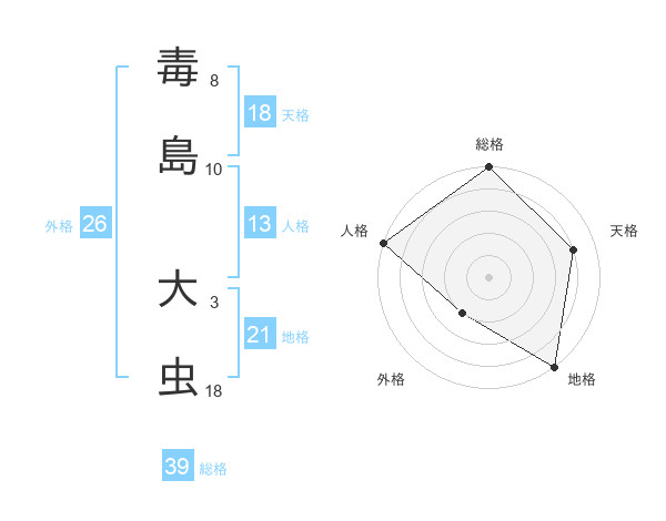 毒島 大虫さんの総格は39画の5点!