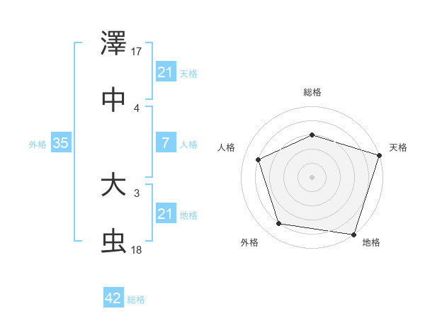 澤中 大虫さんを姓名の画数から五運を鑑定