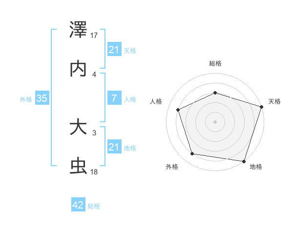 澤内 大虫さんの地格は21画の5点!