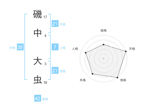 磯中 大虫さんを姓名の画数から五運を鑑定