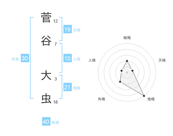 菅谷 大虫さんの総格は40画の2点!