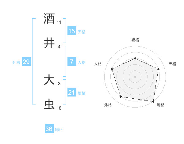 酒井 大虫さんを姓名の画数から五運を鑑定