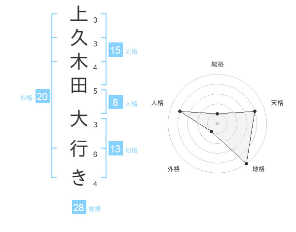 上久木田 大行きさんを姓名の画数から五運を鑑定
