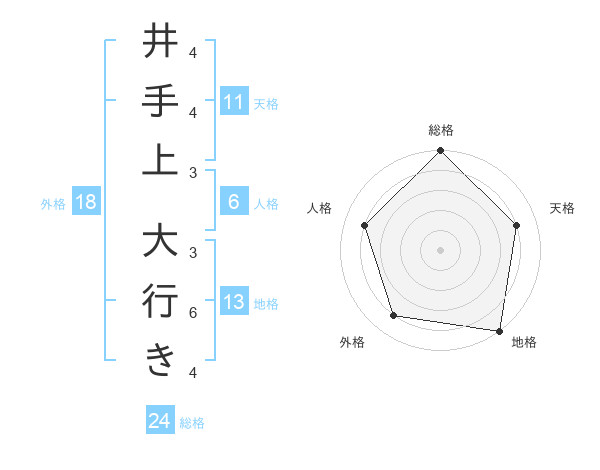 井手上 大行きさんを姓名の画数から五運を鑑定