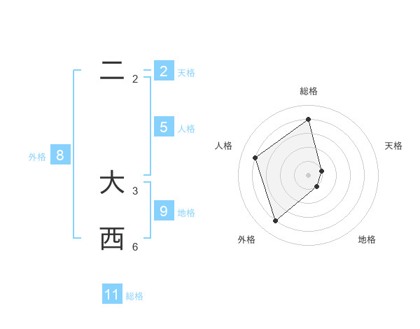 二 大西さんの総格は11画の4点!