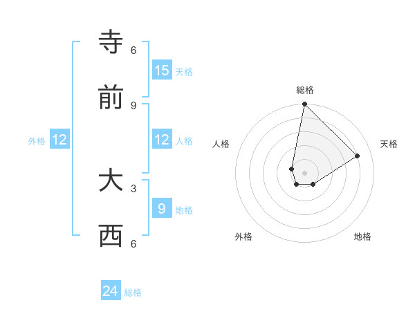 寺前 大西さんの総格は24画の5点!
