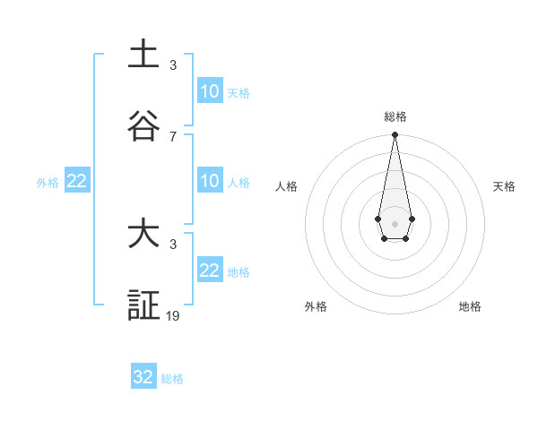 土谷 大証さんの総格は32画の5点!