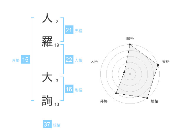 人羅 大詢さんの総格は37画の5点!