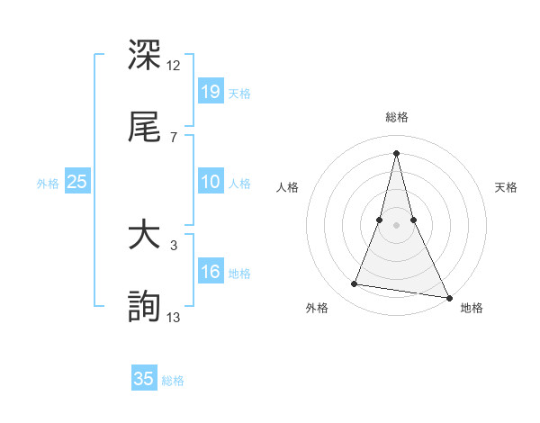 深尾 大詢さんを姓名の画数から五運を鑑定