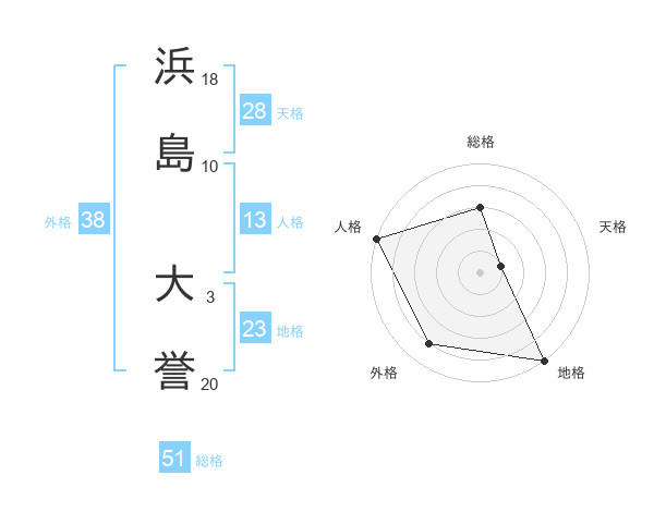 浜島 大誉さんを姓名の画数から五運を鑑定